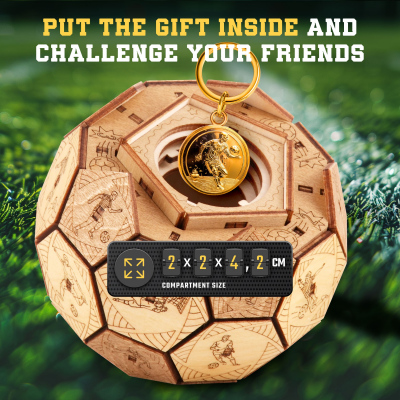 Zažite vzrušenie z Euro 2024 s prvou revolučnou loptou Quest Ball na svete! Tento drevený hlavolam obsahuje mechanizmus tajného zámku a skrytú priehradku na darčeky alebo cennosti. Ručne vyrobený z prírodného brezového dreva a zahŕňa 22 hráčov, trénerov, rozhodcov, reportérov a bláznivého fanúšika na ihrisku.